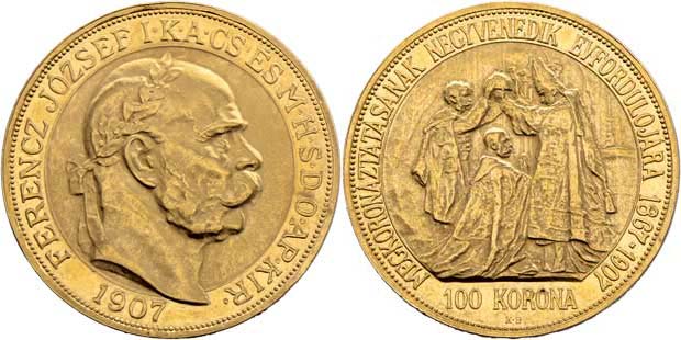 100 Koruna 1907 KB - jubilejní - původní ražba (pouze 11.000 ks), 33.836g, dr.hr., dr.rysky R!
