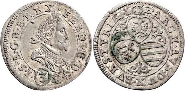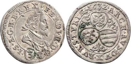 3 Krejcar 1632, Štýrský Hradec, M-A.129, 1.917g, dr.vady razidla, nep.nedor.
