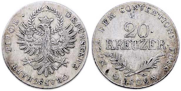 20 Krejcar 1809, P.61a, 6.569g, dr.vada materiálu, mírně just., pěkná patina