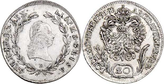 20 Krejcar 1791 B, P.16, 6.666g, nep.vady materiálu, mírně just., patina