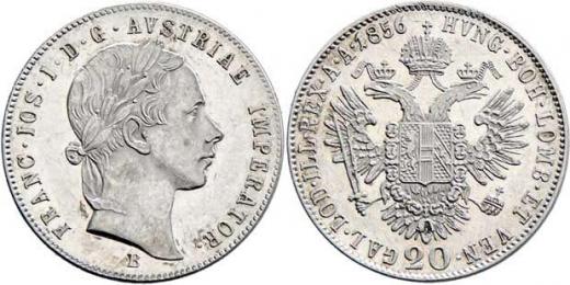 20 Krejcar 1856 B, 4.340g, mírně just., nep.rysky