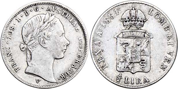 1/2 Lira 1854 V, 2.128g, nep.hr., dr.rys., patina RR!