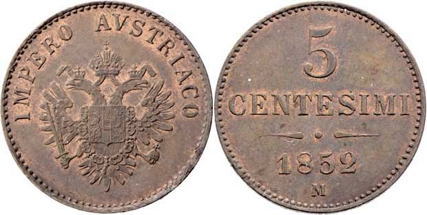 5 Centesimi 1852 M - menší typ, 5.709g, pěkná patina
