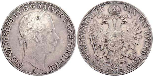 Tolar spolkový 1858 V, 18.448g, dr.hr., dr.rysky, pěkná patina R!