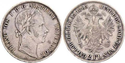 2 Zlatník 1863 A, 24.621g, dr.hr., dr.rysky, pěkná patina R!