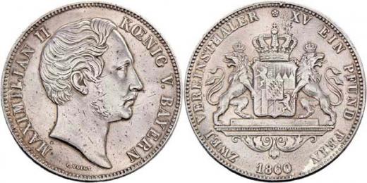 Spolkový dvoutolar 1860, KM.474 (pouze 69.000 ks), 36.977g, dr.hr., rysky, patina R!