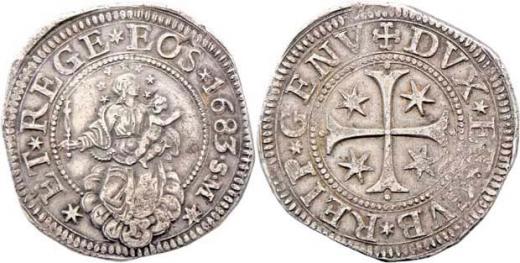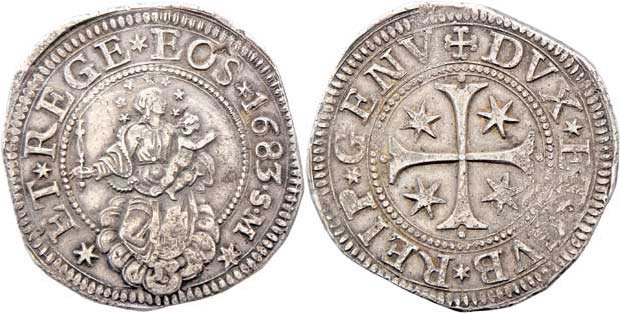 Scudo 1683 SM, KM.79, Dav.3901, 38.153g, nepravidelný tvar střížku, nep.nedor., nep.dvojráz, pěkná pat. RR!