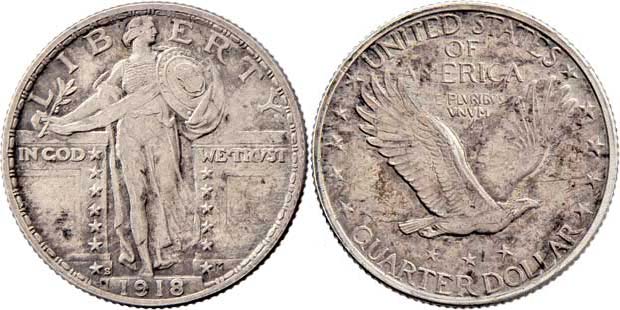 25 Cent 1918 S - stojící Liberty, KM.145, 6.298g, nep.hr., nep.rysky, pěkná patina, téměř
