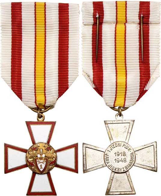 1.jízdní pluk Jana Jiskry z Brandýsa - pamětní kříž, VM.95, opravený smalt v ramenech kříže, stužka, etue, poškozený dekret č.68 na jméno "František Prkno" RR!