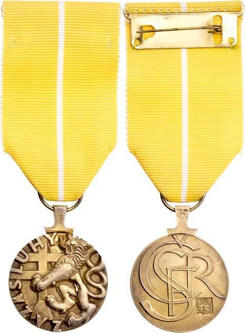 Medaile Za zásluhy - I.stupeň, S-N.198a, zlacené puncované Ag900, výroba ZMS, průvlečná stuha, malá stužka s miniaturou, původní etue R!