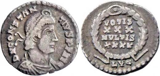 AR Siliqua, Rv:"VOTIS.XXX.MVLTIS.XXXX." RIC.8.216, S.3897 - mincovna Lugdunum - ražba z let 360 - 361, 1.709g, oválný střížek, pěkná patina R!