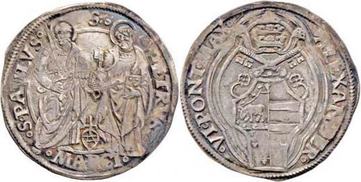 AR Giulio b.l., Svatí Petr a Pavel, opis / tiára, zkřížené klíče, znak, opis, minc.Ancona, FW.II.8600, De Wit.III.3756, 3.240g, mírně zvlněný, pěkná patina