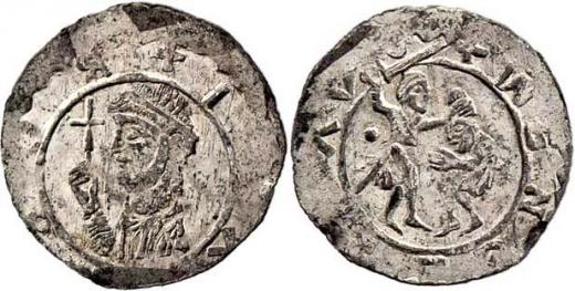 Půldenár, Ca.418cd, F.XI/1 (1277v) - tečka v levém poli reversu, hladké kruhy na obou stranách, 0.309g, exc., nep.nedor., pěkná patina
