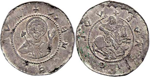 Denár, Ca.534a, F.XV/6 (1481) - hlava jezdce dělí perlovec, 0.835g, nep.nedor., pěkná patina