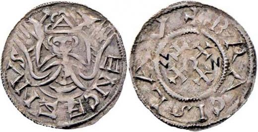 Denár, Ca.310v, jako F.VII/22 (664), ale vyobrazení sv.Václava poněkud barbarské, 1.045g, nep.nedor., pěkná patina