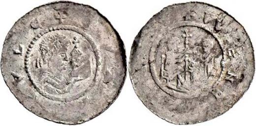 Denár, Ca.460, F.XII/16 (1372) - zobrazeno povýšení českého knížete na říšského číšníka, 0.788g, nep.nedor., pěkná patina R!