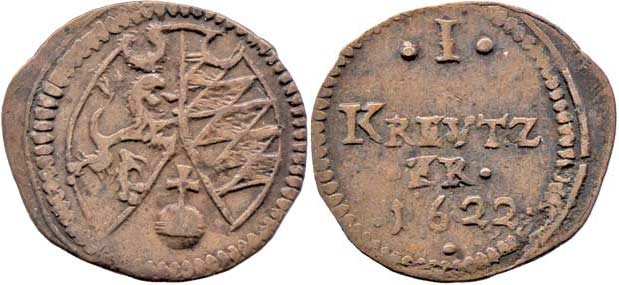 AE Krejcar (4 Fenik) 1622, Heidelberg, ČS.neuvádí, pod. jako KM.55, 1.039g, mírně exc., pěkná patina RR!
