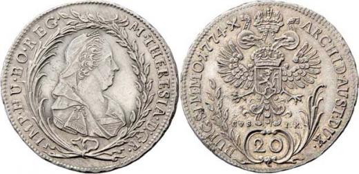 20 Krejcar 1774, Praha-Erdmann a Kendler, N.55, MKČ.1953-1954, 6.644g, pěkná patina, téměř