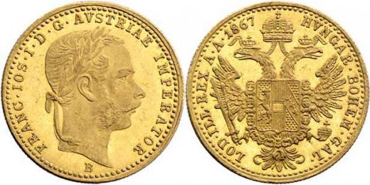 Dukát 1867 B, 3.480g, nep.hr., nep.rysky R!