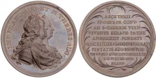 Doner - na vysvěcení Chrámu minoritů ve Vídni, 1748 Dvojportrét zprava, opis / 10-řádkový nápis, Nesign., měď 49mm, M.1801, nep.vady razidla, krásná patina R!