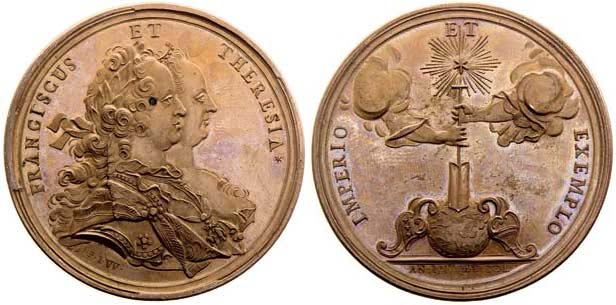 Wurschbaur - medaile na jubil. rok 1750 - dvojportrét a opis / dvě Boží ruce drží kormidlo nad zeměkoulí, opis, Sign., měď 50mm, 55.165g, M.1818, H.2901, pat.