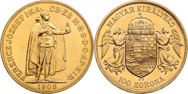 100 Koruna 1908 KB - novoražba, 34.035g, nep.rysky