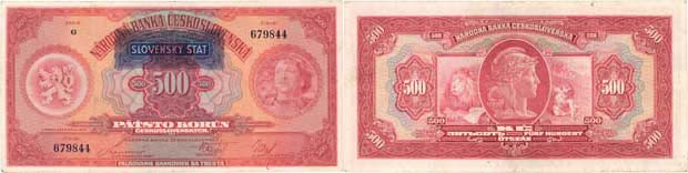 500 Koruna 1929 - přetisk, sér. G, BHK.44 "neperf."