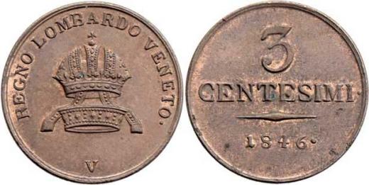 3 Centesimi 1846 V, Benátky, M-A.330, 5.309g, nep.hr., krásná patina R!