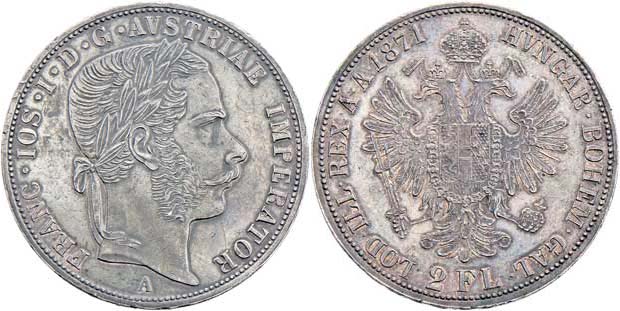 2 Zlatník 1871 A, 24.547g, nep.hr., nep.rysky, pěkná tmavá patina R!