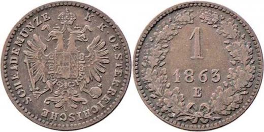Krejcar 1863 E, 3.306g, nep.hr., nep.rysky, pěkná patina RR!