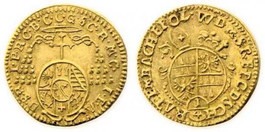 1/4 Dukát b.l. - znak pod kloboukem a mitrou, opis / znak pod kardinálským kloboukem, opis, S-V.773 (B/B), 0.866g, nep.zvlněný, patina, téměř