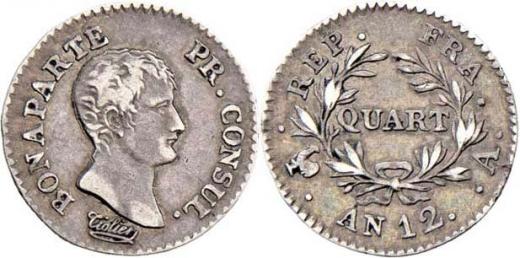 1/4 Frank, rok 12 (= 1804) A, Paříž, KM.653.1, 1.232g, nep.hr., nep.rysky, pěkná patina R!