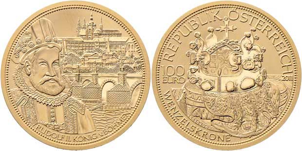 100 Euro 2011 - Rudolf II. a Pražský hrad, KM.0 (nové - Au986, 16.238g, 30mm), kapsle