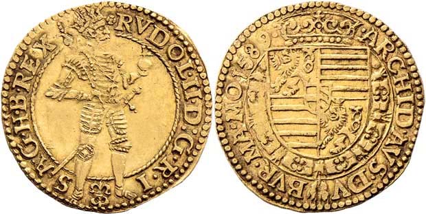 Dukát 1589, Praha-Ercker, J.64b-2, MKČ.295, 3.476g, dr.vada materiálu, nedor., patina, téměř