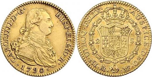 2 Escudos 1790 M-MF, Madrid, KM.435.1, 6.740g, nep.hr., nep.rysky, pěkná patina R!