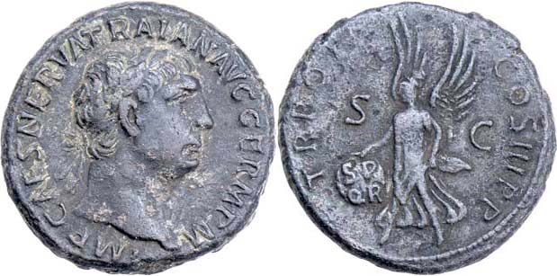 AE As, Rv:"TR.POT.COS.III.P.P.S.C." Victoria se štítem "SPQR", S.922, RIC.417 - mincovna Řím - ražba z let 99 - 100, nep.nedor., pěkná patina, téměř