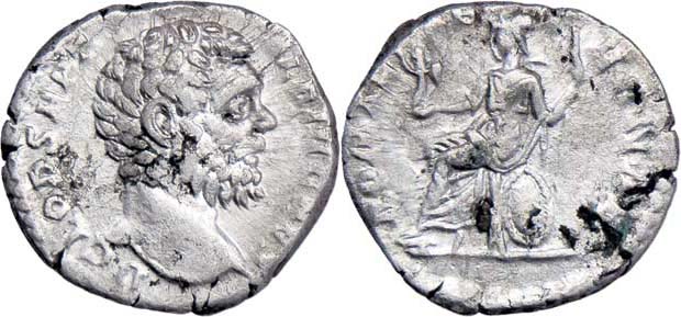 AR Denár, Rv:"ROMAE.AETERNAE.", sedící Roma, S.1630, RIC.11b - minc. Řím - ražba z let 193 - 195, mírně exc., skvrnky, patina R!