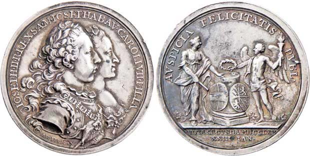 Wideman - AR medaile na svatbu ve Vídni 23.1.1765 - dvojportrét zprava, opis / Austria a Hymen u oltáře, písmo, Sign., 40mm, 26.100g, M.1938, dr.hr., nep.rys.