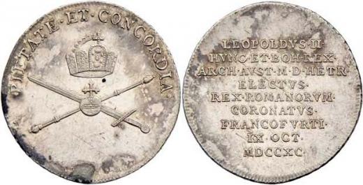 Větší jeton na korunovaci ve Frankfurtu 9.10.1790 - císařská koruna, žezlo a meč, opis / 9-řádkový nápis, Ag 24mm, 4.371g, Nov.E.10b, M.2208, vl.škr., skvrnky