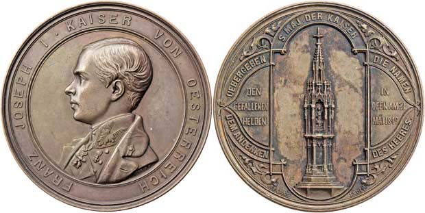 Cesar a Seidan - Hentziho pomník v Budíně 1849 - poprsí císaře zleva, opis / pomník v ozdobném rámu, písmo, Sign., měď 67 mm, H.3755, MZČ.150/8, téměř