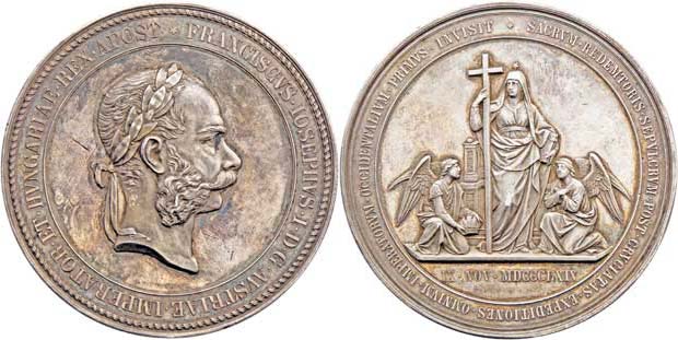 Tautenhayn - návštěva Božího hrobu v Jeruzalémě 1869 - portrét zprava, opis/ personifikace Víry, andělé, písmo, Ag 72mm, 122.024g, H.3806, dr.škr., patina R!