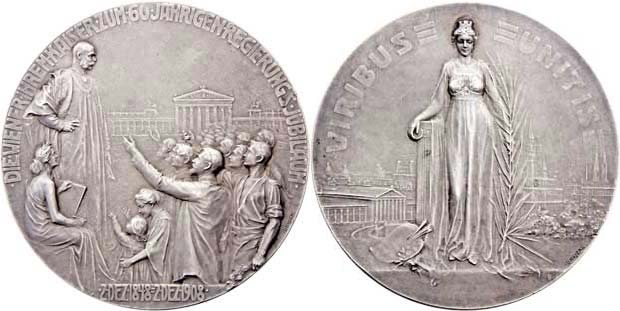 Hujer - AR medaile na hold Vídně k cís.jubileu 1908 - obyvatelé města zdraví císaře, opis / stoj.Vindobona, opis, Sign., 85mm, cca 230g, nep.hr., vl.rys., patina