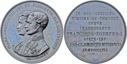 Canzani - AE medaile na návštěvu milán. mincovny 1857 - dvojportrét zleva, latinský opis / 8-řádkový nápis, Sign., měď 56 mm, H.3773, krásná patina R!