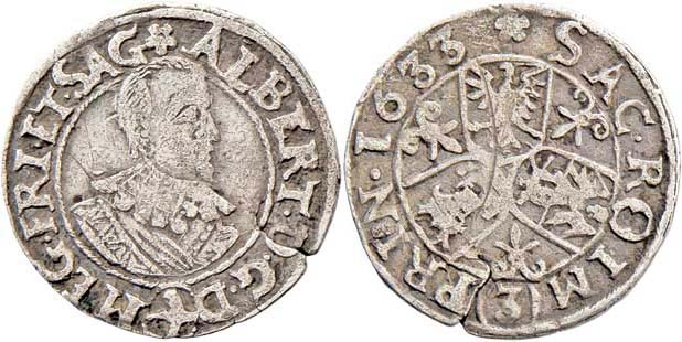 3 Krejcar 1633, Jičín-Steinmüller, Ne.95, Meyer.328, Don.4016, 1.528g, napr.okraj, vl.škr., pěkná patina