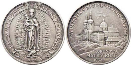 Hladík - AR na 200 let korunovace Matky Boží 1932 - Olomoucká Madona, opis / Kopeček u Olomouce, písmo, Ag 987, 45mm, 42.478g, Taul.387, BK.28/3A, nep.hr.