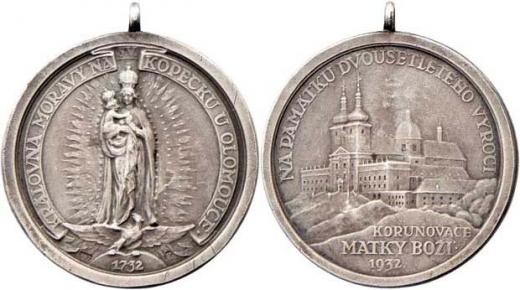 Hladík - AR na 200 let korunovace Matky Boží 1932 - Olomoucká Madona, opis / Kopeček u Olomouce, písmo, Ag987, 25mm s pův.ouškem, 8.382g, Taul.390, BK.28/4A