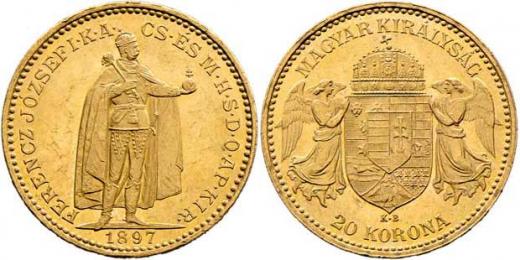 20 Koruna 1897 KB, 6.773g, nep.hr.