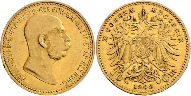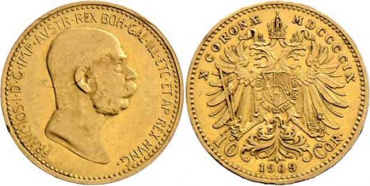 10 Koruna 1909 - Marschall, 3.387g, dr.hr., nep.rysky, patina, téměř