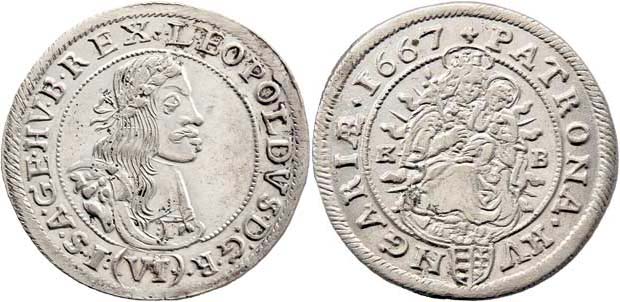 VI Krejcar 1667 KB, Nech.1188, Husz.1450, 3.331g, válcovaný, pěkná patina R!