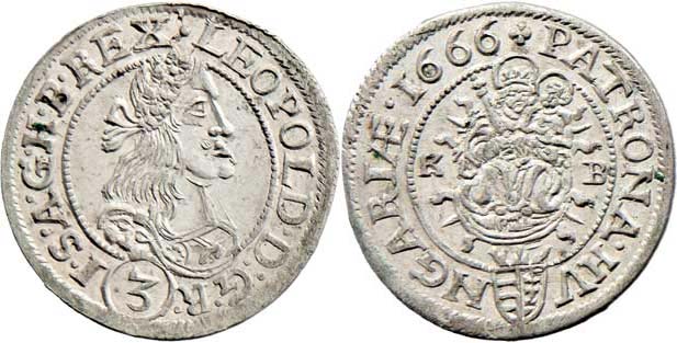 3 Krejcar 1666 KB, Nech.1209, Husz.1465, 1.743g, pěkná patina